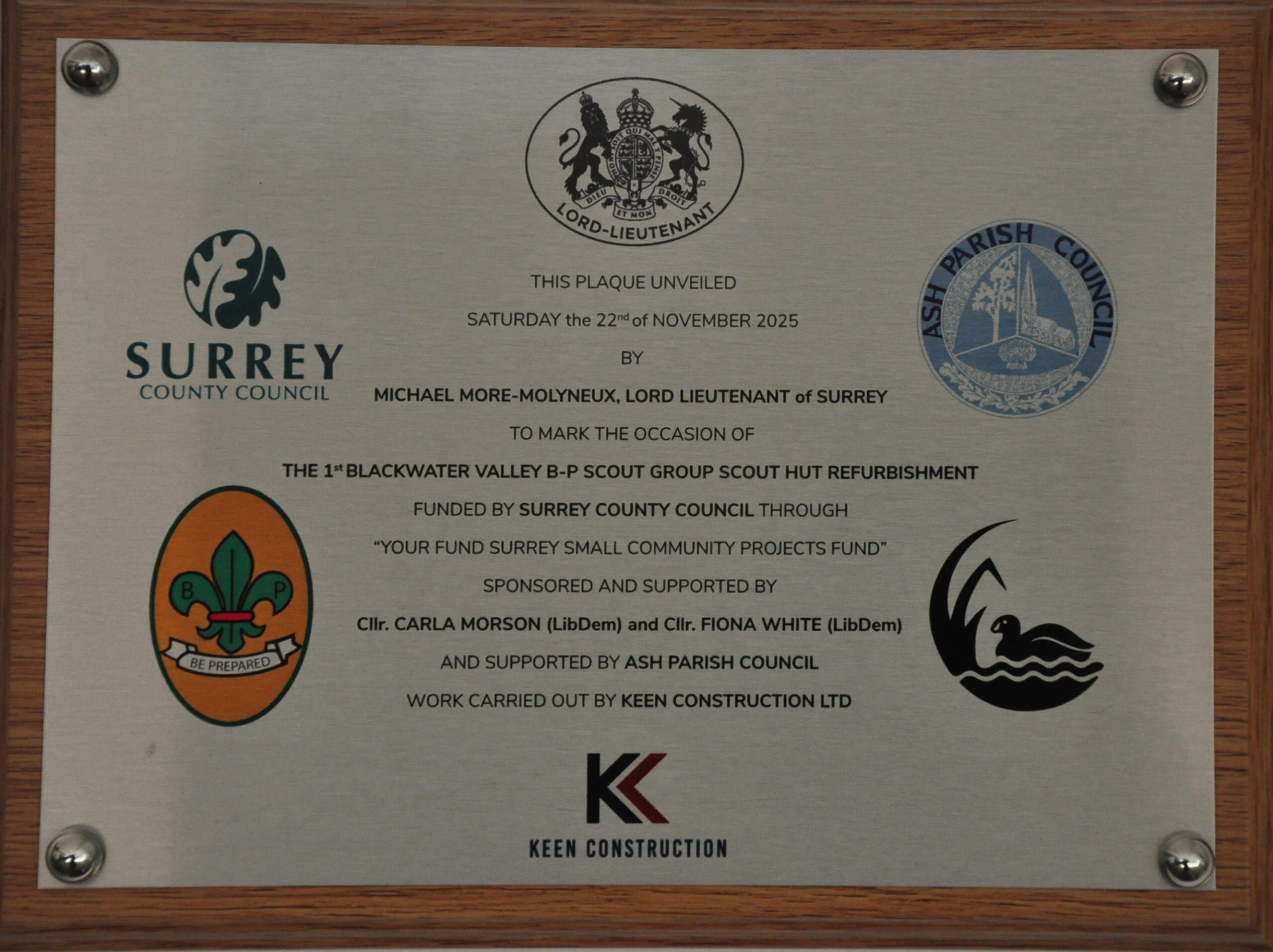 My Lord Lieutenant of Surrey, Councillor Carla Morson, Councillor Fiona White, Shaista Salim from Your Fund Surrey, Fellow Scouts, Supporters of our Scout Group, family and, so many friends. So many friends, some of whom are unable to be here today, but I am also thinking of those who can no longer return but also belong in our hearts today.
