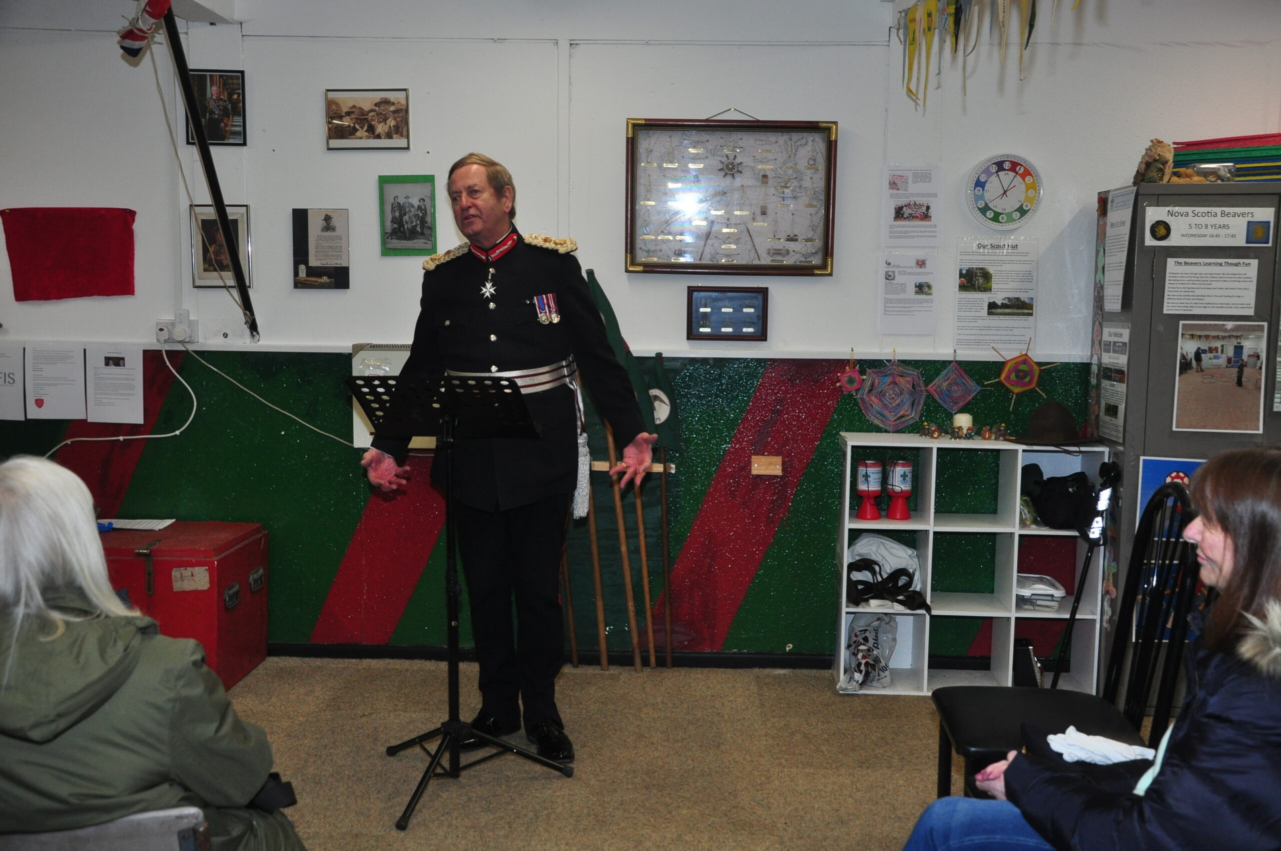 Welcome here today to what is, in fact, a new Scout Hut. The internal walls and the floor are the only remnants of a Scout Hut that we have kept useable for over twenty-five years after inheriting it as a dilapidated building.